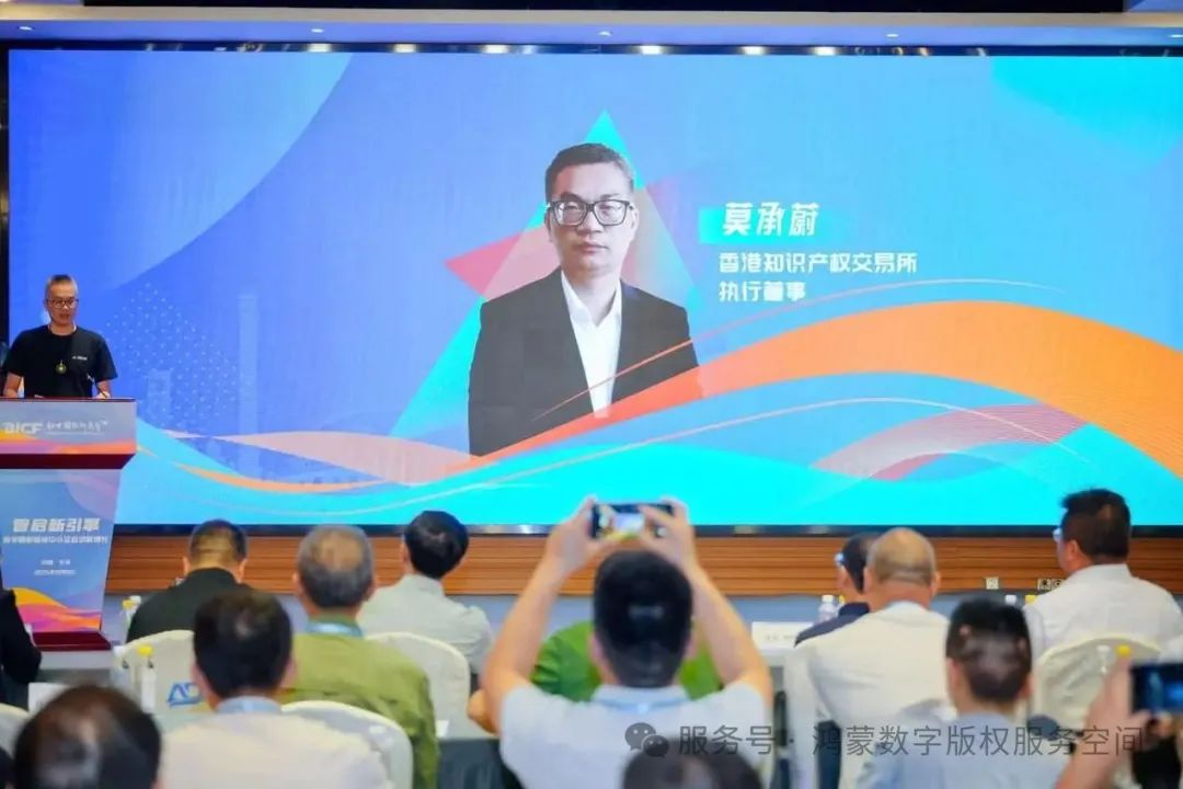 版权赋能中小微实体经济,加强了版权保护,它是完善产权保护制度,打通版权登记、上链、存证、然后运用、保护、管理和服务全链条,更大力度加强版权保护国际合作,建设制度完善、保护严格、运行高效、服务便捷、文化自觉、开放共赢的版权强国,为建设创新型国家和社会主义现代化强国提供坚实保障。来自香港知识产权交易所的莫承蔚执行总裁在会上作了《知识产权强国战略以及未来在交易所的趋势》精彩发言,同时他带来了